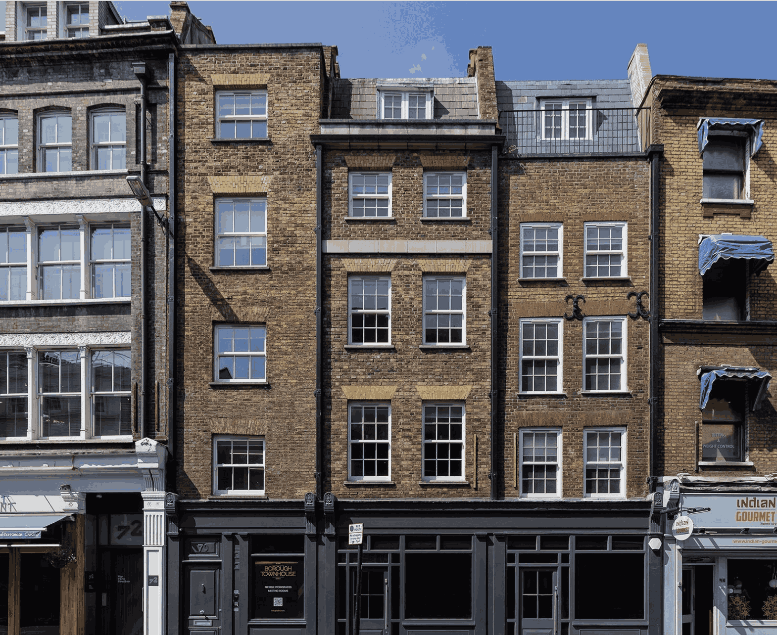 Nammu Borough Townhouse is a Grade II listed former Georgian townhouse on Borough High Street in SE1, extensively refurbished to provide boutique, fully furnished private offices on flexible terms. The building combines period architecture with a high-quality contemporary interior and is one of the most characterful addresses in the Nammu portfolio.