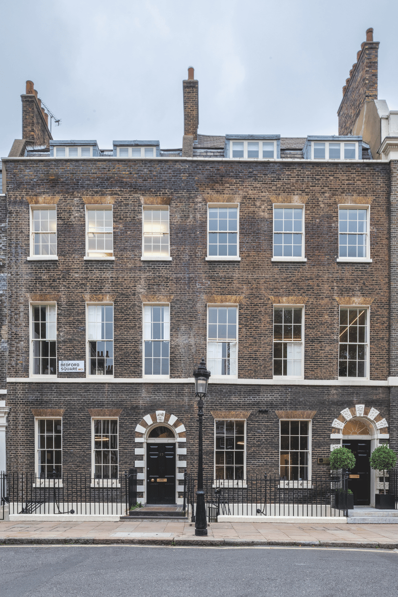Grade I listed Victorian townhouses open onto Bedford Square Gardens, with private garden access offering a rare retreat in Bloomsbury. High ceilings and period features create an environment where teams can connect and collaborate across six floors. The space accommodates between 2 and 70 people, with seven offices per floor and meeting rooms designed to help ideas converge.