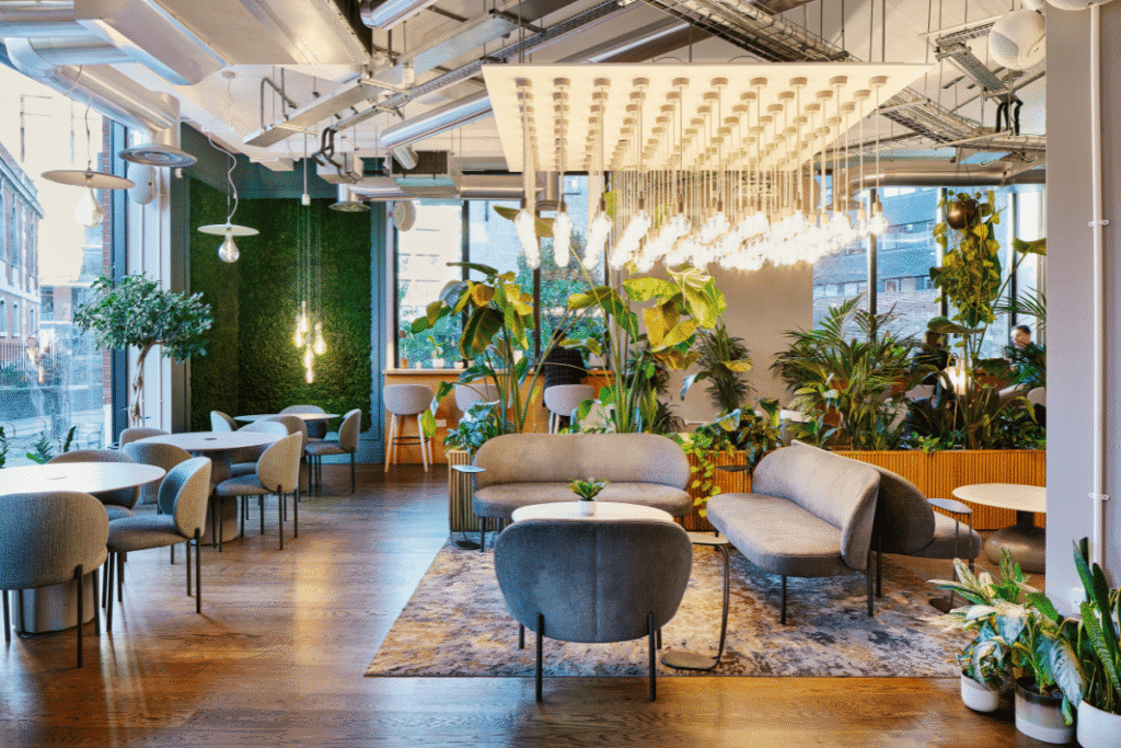 A rooftop terrace overlooking Borough provides the perfect spot where ideas converge and colleagues connect after a productive day. A selection of wellness classes offer an opportunity to recharge or stay energised. Dog-friendly policies mean four-legged companions can join the workday. Spread across five floors, workspace options accommodate teams from 4 to 48 desks, supported by meeting rooms and phone booths for focused collaboration. The on-site café fuels creativity throughout the day, while showers and bike storage cater to cycle commuters. Borough station sits just two minutes away, with London Bridge also nearby. High-speed WiFi keeps everyone productive, and communal kitchens create opportunities for the community to gather and share ideas between meetings.